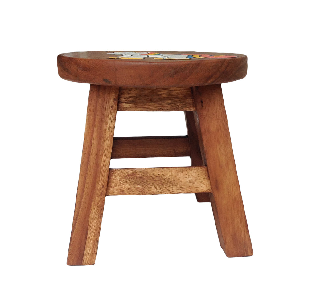 - Solid wooden stool for kids. 100% handmade design, crafted by skilled artisans from sustainable, non-endangered and ethically sourced suar wood, a tropical hard wood known locally as rain tree wood or monkey pod wood.