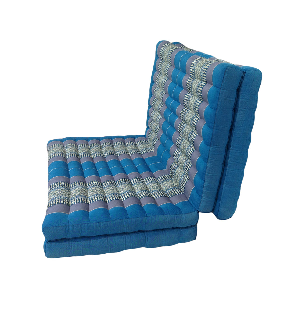 Thai Kapok Folding Floor Mattress – Single (200 × 80 cm) Natural Firm Support for Yoga, Meditation, Massage & Guest Bed, Indoor & Outdoor Use (Blue)